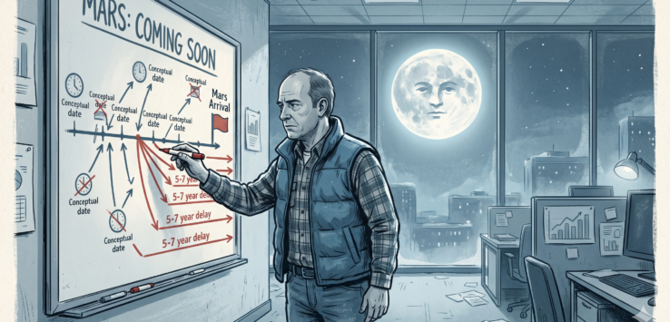 Nobody at the table hNobody at the table had been to space. This felt worth noting, given that two of them had opinions about it with the confident specificity of people who had. “The delay makes complete sense strategically,” said